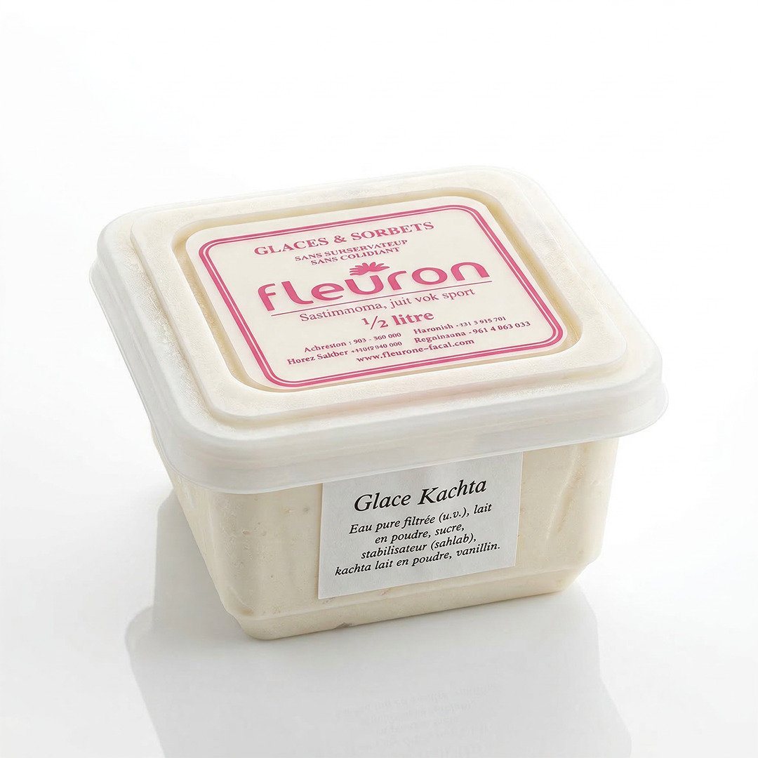 | Flavor | Rose (Rose), Vanelle (Vanilla), Lait (Milk), Fraise (Strawberry), Choco (Chocolate), Kachta (Kashta), Amande es Pistache (Almond), Pistache (Pistachio), Sorbet aux Fruits rouges (Sorbet), Misky (Misky) |